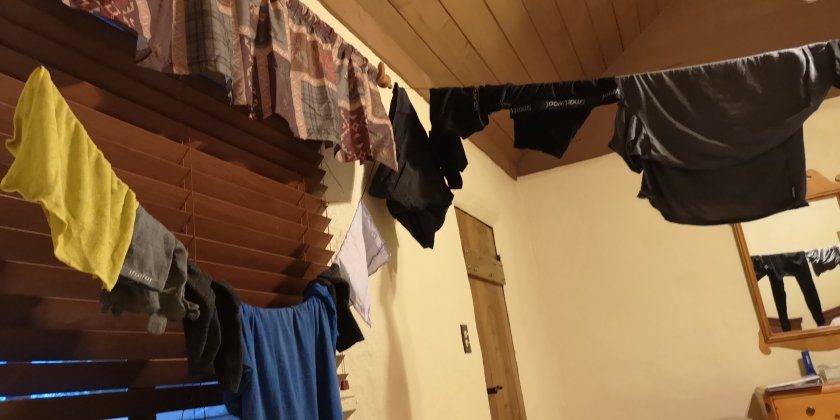 Zuerst mal die Wäsche waschen, das heisst alles rein in die Maschine ausser Daunenjacke und Regenhose. Das ist dann auch das Waschtag Outfit.