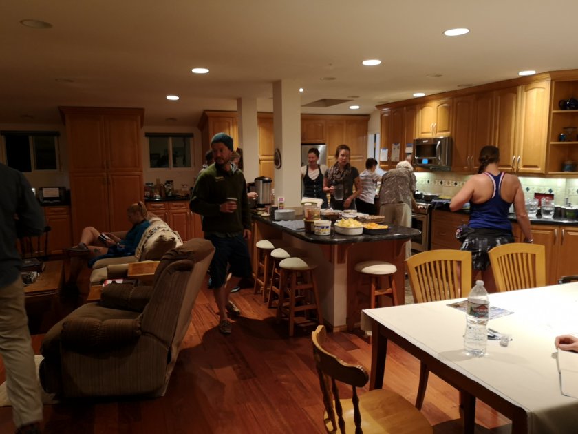 Die ganze Bande, die gestern bei Scout und Frodo übernachtet haben und heute ihren Trailstart haben.