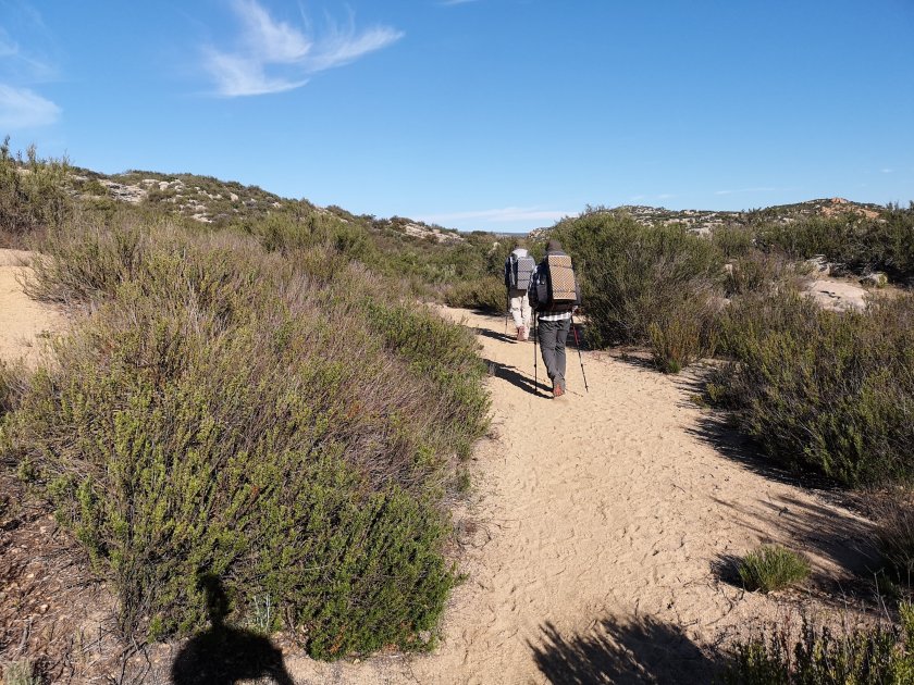 Aber bekanntlich kommt es erstens anders und zweitens als man denkt! Es wurde der bisher schönste Tag auf dem Trail. Der Wind war bis 10.00 vollkommen weg und an der Sonne war es wunderbar warm. Der Trail stieg stetig an und zum ersten Mal wurde es richtig gebirgig.