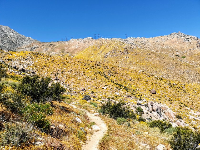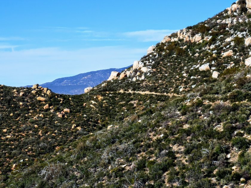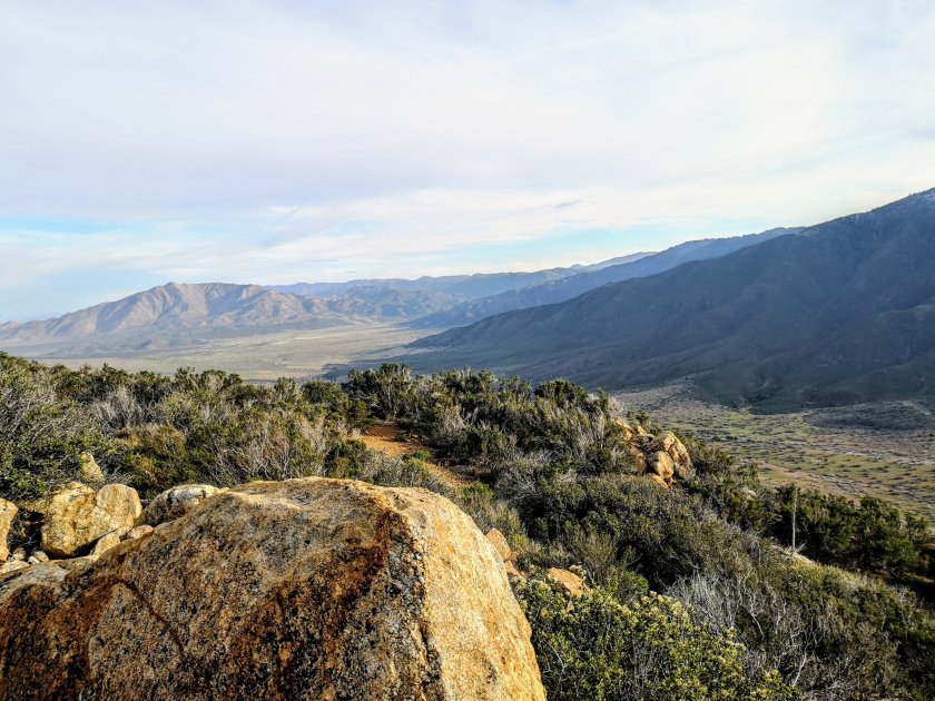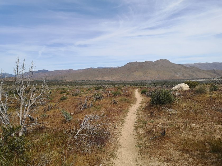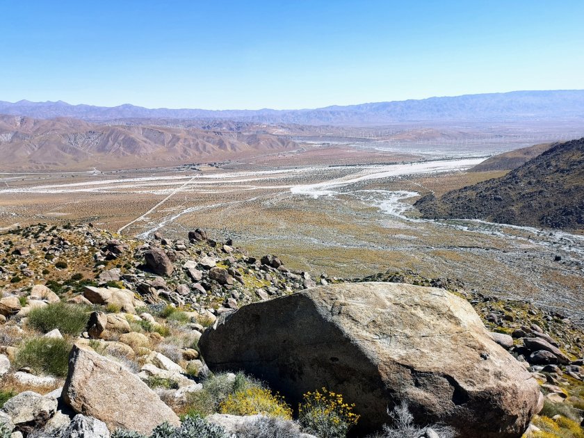 Und zum ersten Mal sah ich in der Ferne die Berge von San Jacinto und Baden Powel, zweiterer mit sehr Schnee! Die Berge sind in 2-3 Wochen auf dem Programm. Mein Campspot ist heute Abend in einem Tal, so sollts diese Nacht nicht so kalt werden.
