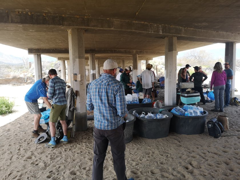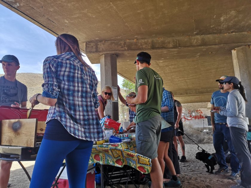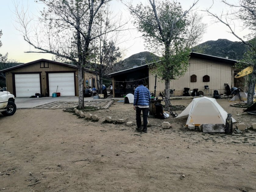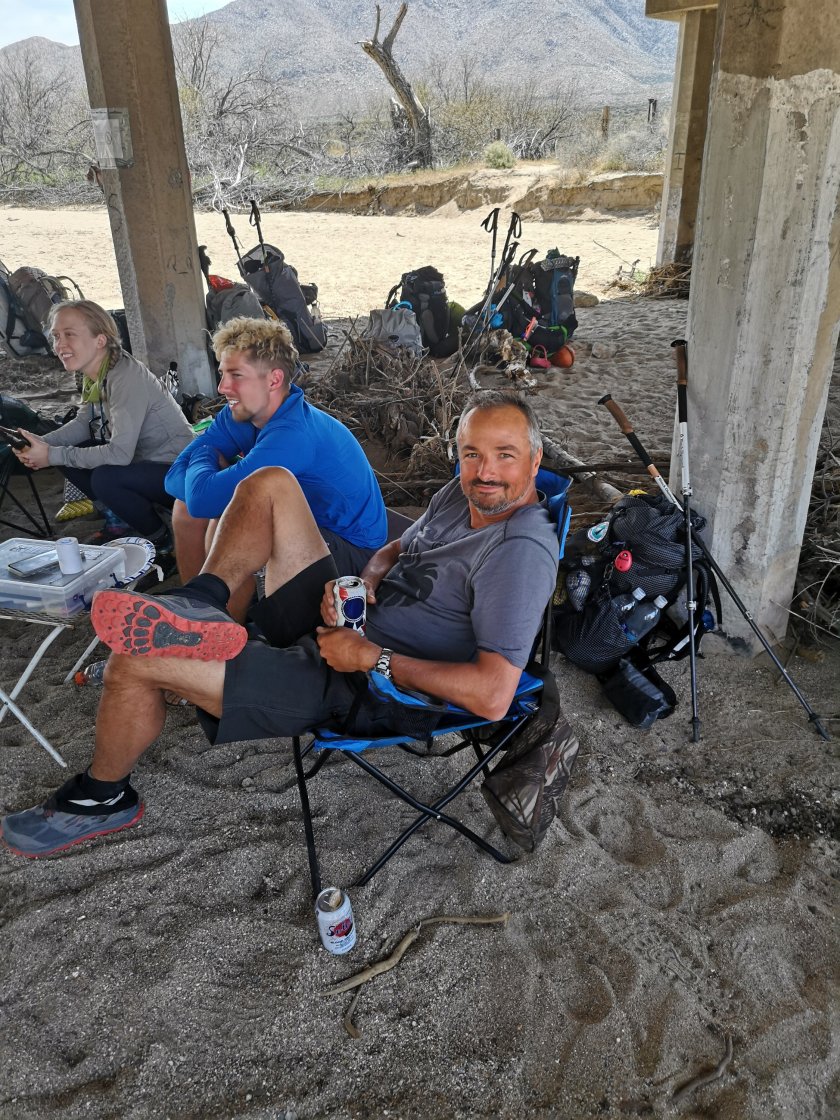 Der Plan war dann mit Hitch-Hicking (Autostop) nach Julian und da ein Hotelzimmer nehmen. Es kam dann anders. Bei der Strasse war da eine Tafel, es gäbe Trailmagic unter der Strassenbrücke. Und so sah das dann aus: