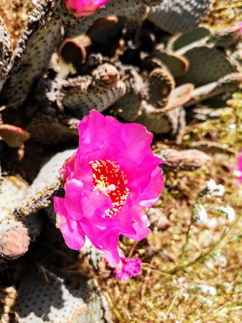 Es ging hoch auf einen Hügelzug, dem wir den ganzen Tag mehr oder weniger folgten. Immer wieder gab es schöne Aussichten in die Wüste mit wechselnden Perspektiven