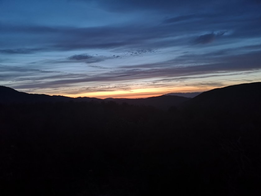 Die Nacht war recht kalt und der Morgen ebenso, da wir in einem Tal gecampt haben wo am Morgen keine Sonne hin kommt. Vom Tal Rauf auf eine Krete wo ein schöner Wald war. So eine friedliche Stimmung im Morgenlicht.