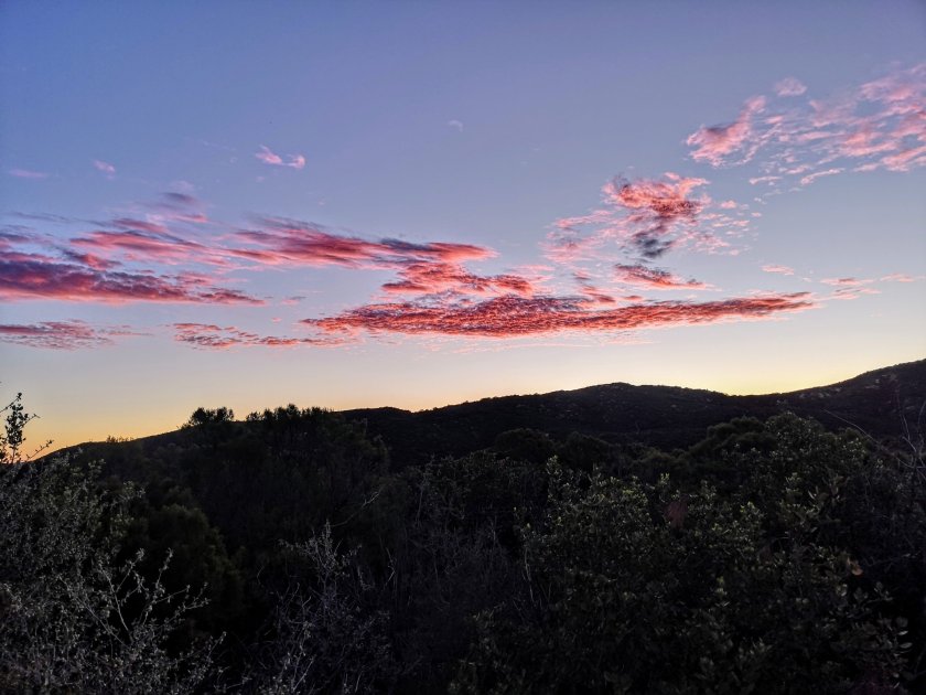 Der Weg heute führte über eine Hügelkette so ca. 1500müM. Es war den ganzen Tag sehr windig, aber sehr angenehme Temperaturen zum hiken. Auf dieser Höhe übernachte ich auch heute auf einem Campground. Und das ist die Aussicht und der Sonnenuntergang von hier oben: