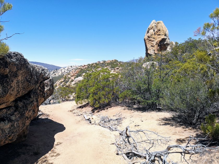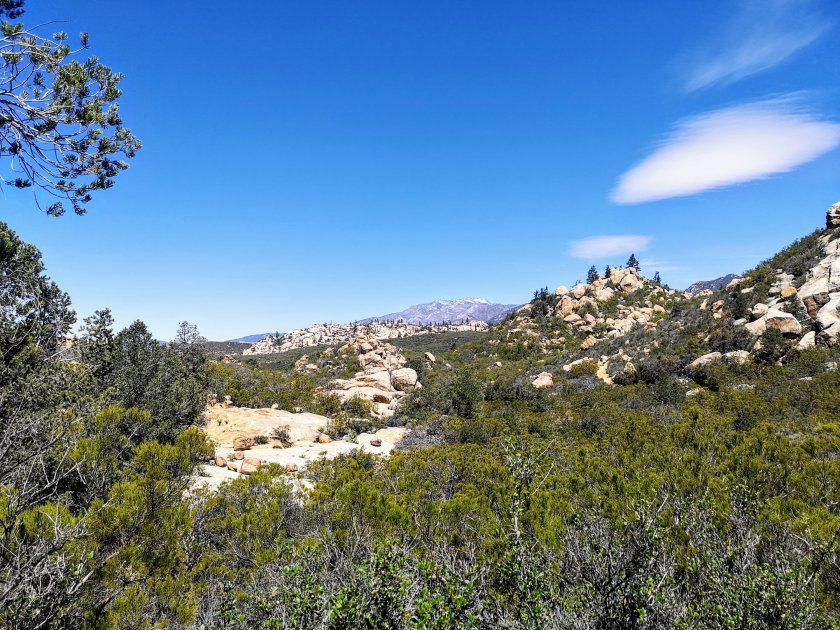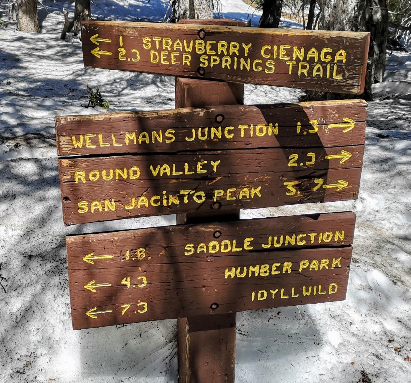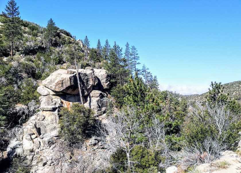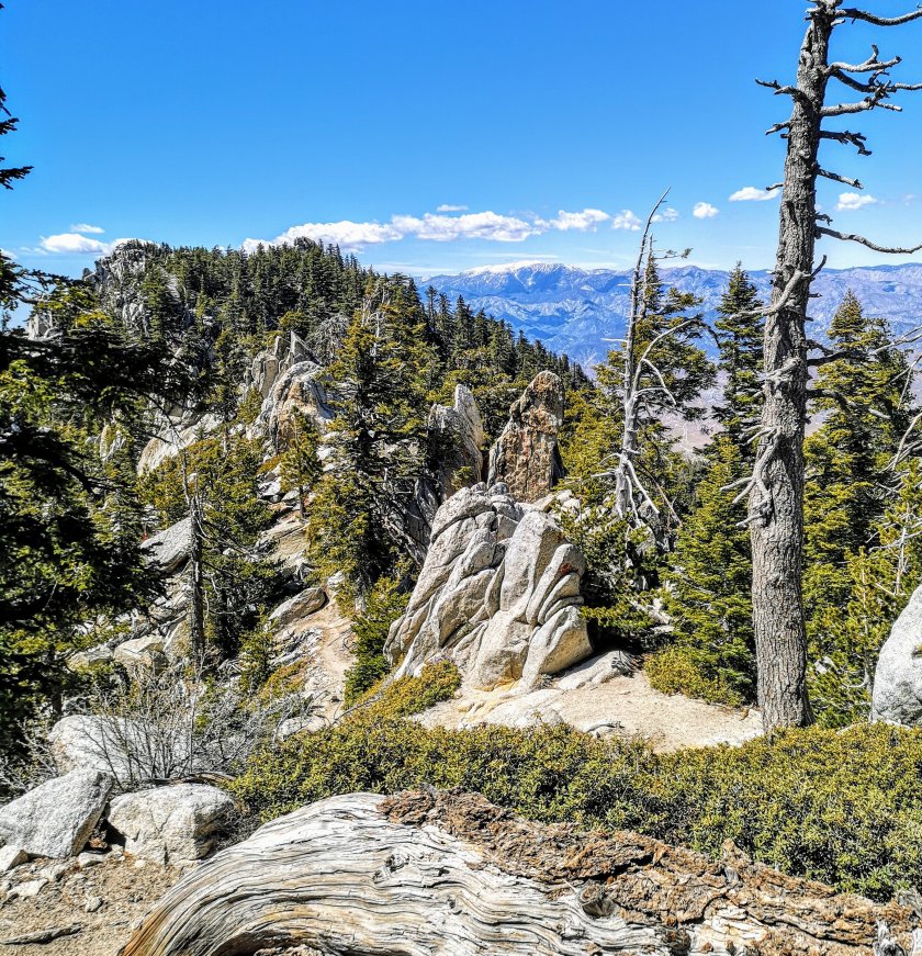 Der Trail verlief in einem lockeren Wald und es kamen immer mehr Abschnitte mit Schnee bis zum Saddle Junction. Das ist der Punkt an dem man den Trail verlässt und es nach Idyllwild runter geht. Ca. 1 3/4 Stunden und 800 Höhemeter runter laufen nach bereits 7 Stunden hiken.Aber das Tal runter nach Idyllwild ist sehr schön und auch als Klettergebiet bekannt.