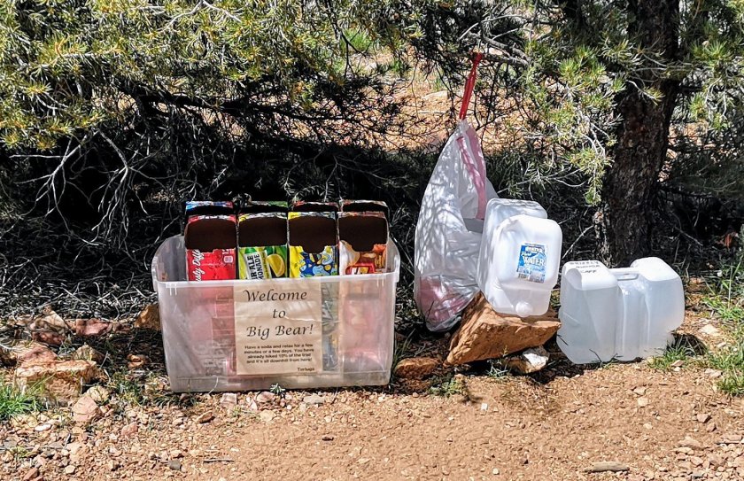 Trailmagic! Ein junges Paar aus Idyllwild hatte beim Parkplatz eine Verpflegungs-Station eingerichtet mit Sandwichs, Früchten, Muffins und Getränken. Und nach dem Essen gabs noch einen Hitch runter nach Idyllwild. Und dabei hatte ich gedacht es gäbe einen Sch…. Tag!