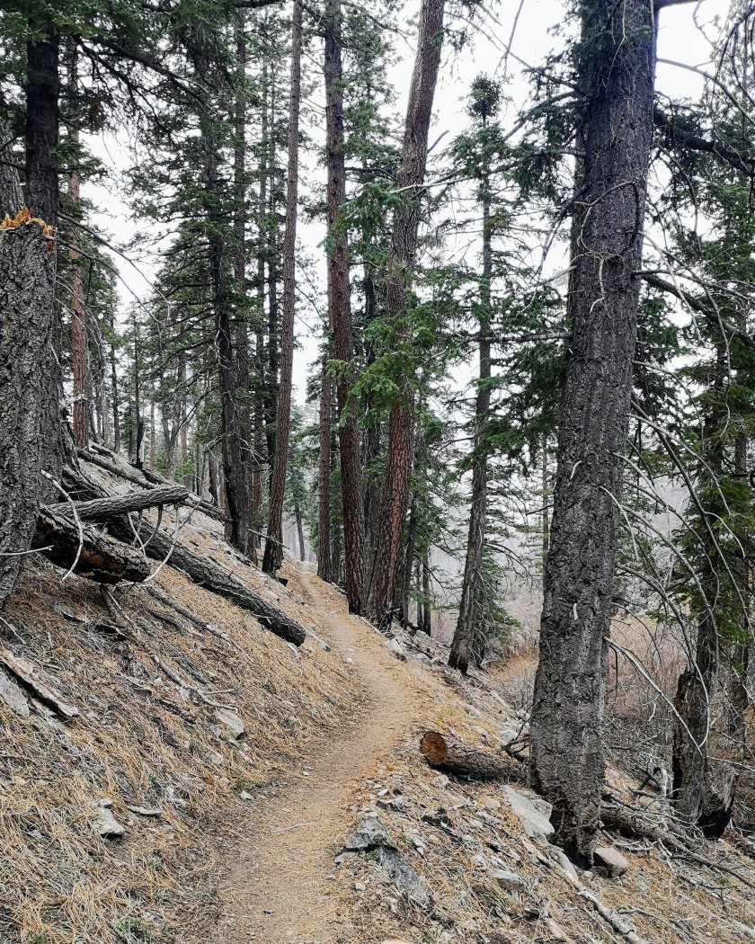 Der Trail hatte mich wieder, aber die californische Sonne hatte heute ihren freien Tag. Der Streckenabschnitt führte mehrheitlich durch verschiedene Arten von Wäldern.