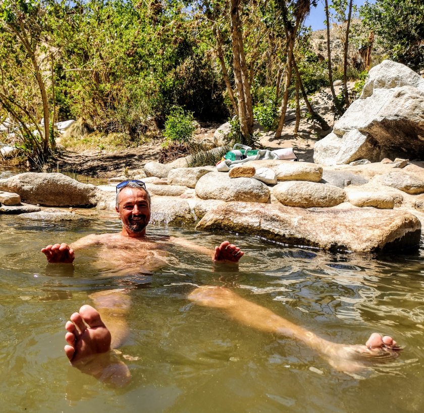 Nach 20 Meilen die ich schon um 14.30 hinter mich gebracht hatte, stand ein Highlight des Trails an. Die hot pools am Deep Creek. Alle schwärmen davon, aber es wird auch berichtet, dass diese völlig überlaufen seien. Ich hatte aber Glück, den es war eine gemütliche Atmosphäre an den Pools, keine Kiffer, kein Partyvolk.